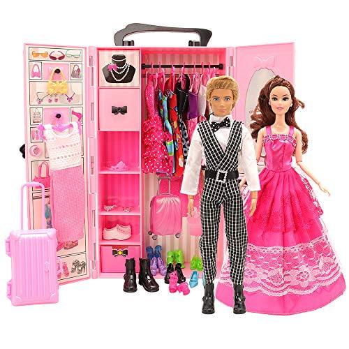 Bm Closet Wardrobe 44 Pcs Doll Clothes Sets For Girl Dolls Ken Doll Clothes Outfit And Dress Shoes Bags Necklace Hangers Trunk 115 Inch Doll Walmart Com Walmart Com